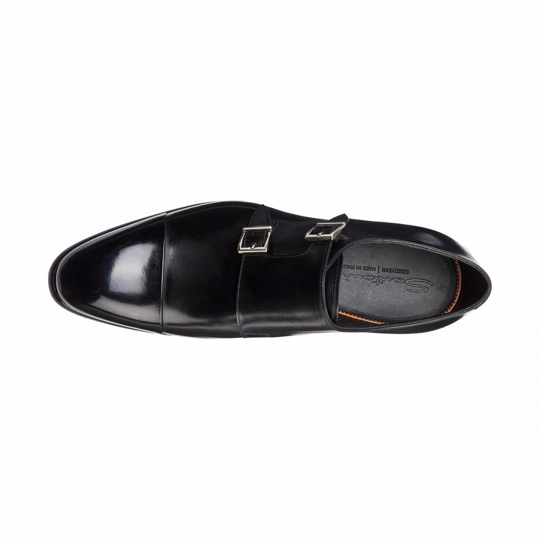 Chaussure double boucle au design intemporel et raffiné, entièrement réalisée en cuir vieilli et coloré dans de profondes tonalités noires. Doté d'une semelle en cuir, cet article est fabriqué selon la technique de montage Goodyear, synonyme de haute qual
