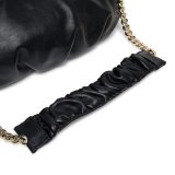 Sac en cuir noir fumé. Un sac baguette de taille moyenne affichant une silhouette souple et volumineuse. Bandoulière chaîne avec anse en cuir drapé. Made in Italy.