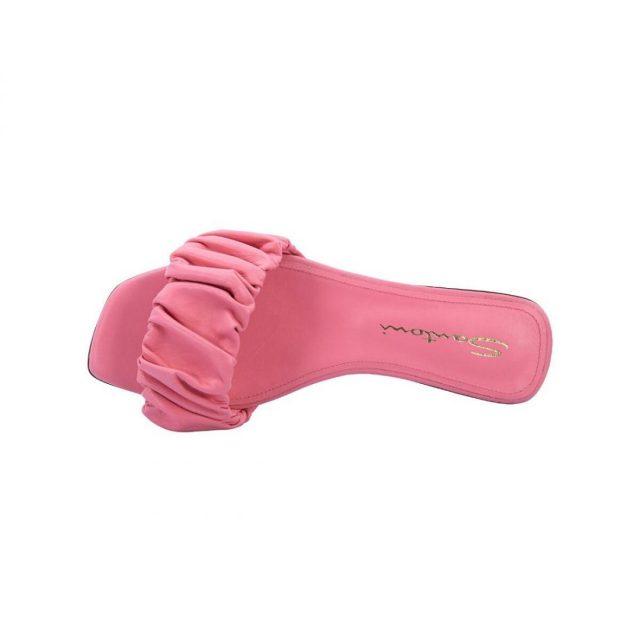 Claquettes en cuir rose Lampone. Une sandale plate ornée d'une lanière en cuir drapé sur le devant. Semelle en cuir. Made in Italy.